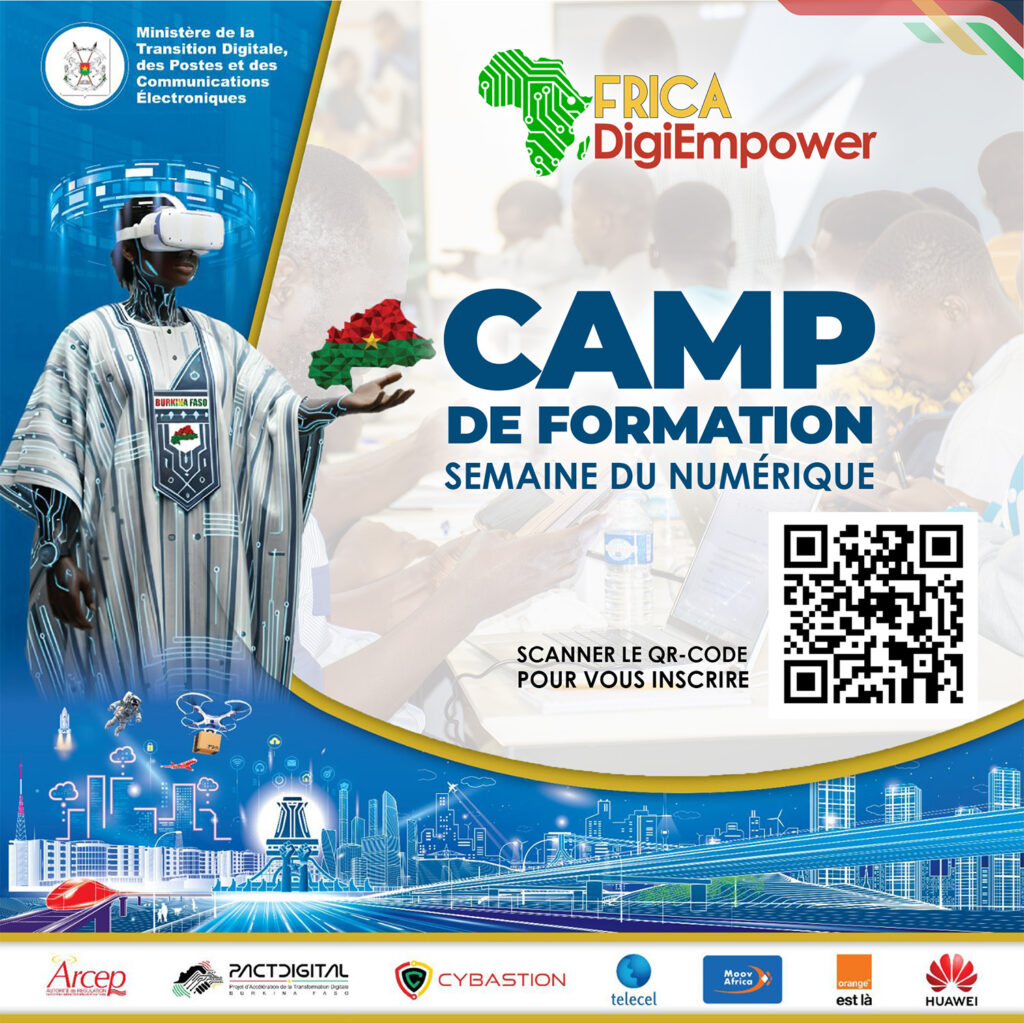 Dans le cadre de la 20ᵉ édition de la Semaine du Numérique du Burkina Faso, l’entreprise Américaine CYBASTION, en partenariat avec le Ministère de la Transition Digitale, des Postes et des Communications Électroniques, t’invite à prendre part à son camp de formations gratuites sur les compétences numériques essentielles, qui se tiendra du 19 au 21 novembre 2025 au Salon International de l’Artisanat de Ouagadougou (SIAO) Salle R+1.